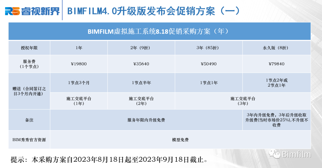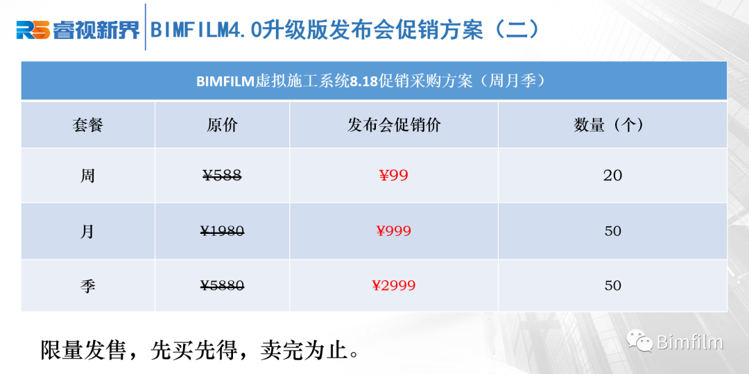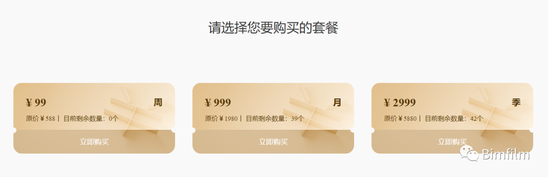 針對于本次發(fā)布會,不論是年的購買還是周月季的購買,我們都給出了BIMFILM史上最大的折扣優(yōu)惠。
