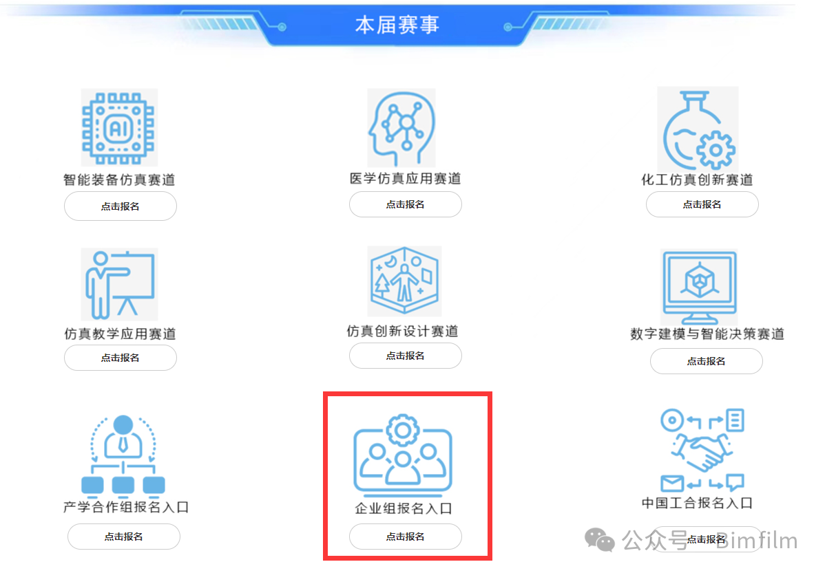 進入大賽官網(wǎng)→點擊【報名入口】→選擇【仿真教學應用賽道】報名入口。點擊進入,注冊報名即可。